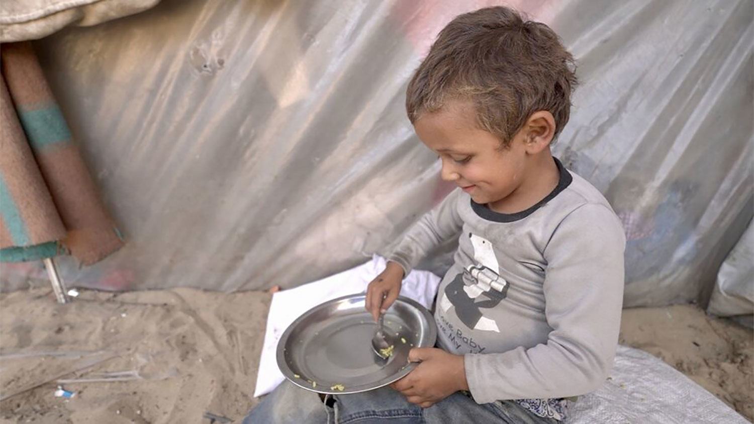 يمشي أطفال السيدة حسونة مسافة 1.5 كيلومتر في كل اتجاه لجلب الماء اليوم. وبينما كانت تتحدث في خيمتها التي يمكن أن تنهار بسهولة بفعل الرياح أو تغمرها مياه الأمطار الشتوية، كانوا يتناولون حصصهم الصغيرة من أرز وفره برنامج الأغذية العالمي. ربما كانت هذه وجبتهم الوحيدة لذاك اليوم، وكان طفلها الصغير ينظف طبقه ببطء من كل حبة أرز بابتسامة صغيرة على وجهه.